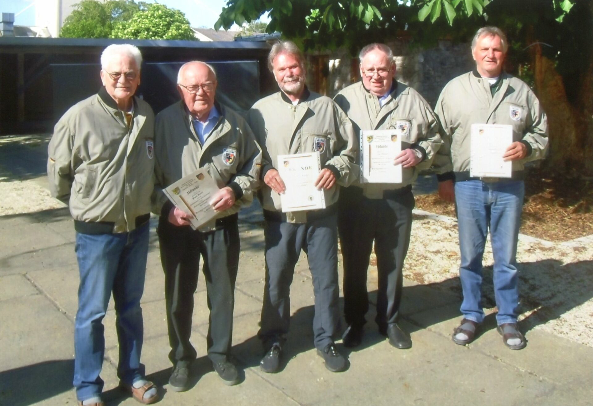 Anlässlich der Monatsversammlung der Reservistenkameradschhaft (RK) Salching, am Freitag, im Gasthaus Zur Linde, zeichnete der RK-Vorsitzende Franz Pinzl, im Auftrag der Reservisten der Deutschen Bundeswehr e.V. Kreisgruppe Deggendorf – Straubing – Bogen, acht Reservisten der RK Salching mit den verschiedenen Abzeichen aus. Je eine Urkunde mit Anstecknadel erhielten für 25-jährige RK-Mitgliedschaft die Hauptgefreiten d.R. Alfred Stelzer und Michael Kastens sowie der Oberstleutnant d.R. Peter Thiel, für 40-jährige Mitgliedschaft der Hauptmann a.D. Franz Richter und Gefreiter d.R.. Peter Hermann, für 50-jährige Mitgliedschaft der Hauptgefreite d.R. Johann Lermer. Hauptmann a.D. Josef Bierl erhielt als Anerkennung für seine Verdienste um die RK Salching das Kreisgruppenabzeichen in Silber und der Obergefreiter d.R. Kurt Volkert als Anerkennung für seine Verdienste um die RK Salching das Kreisgruppenabzeichen in Gold.