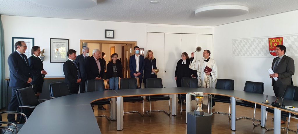 Im Vorfeld der kirchlichen Segnung der Kita „Maria Schutz“ erteilte Pfr. Heinrich Weber zusammen mit Pfrin. Erna Meiser auch dem nun barrierefreien und erweiterten Verwaltungsgebäude in Aiterhofen den kirchlichen Segen.