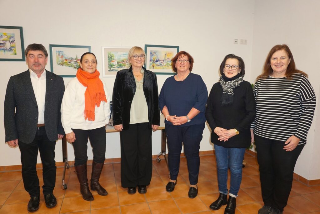 Überreichung der Handschmeichler (v.l.) Rita Ring, Erika Eisenschink, Leni Schwarz, Anita Schlüsselbrunner, Christa Buchschmid, Dr. Carmen Müller - Foto Karl Schneider