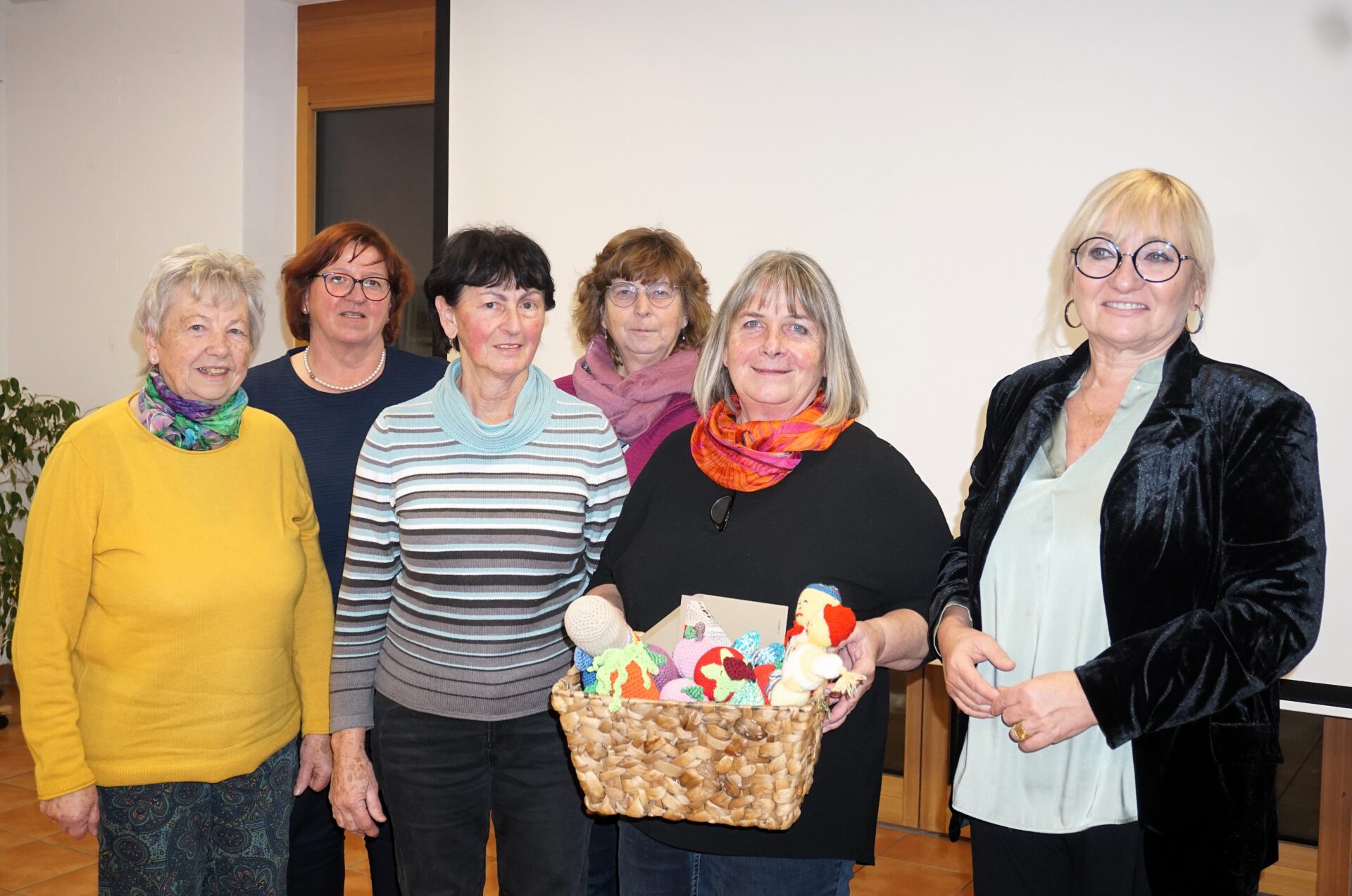 Zuletzt wurde im Rahmen der Veranstaltung noch vom „Mittwochs Handarbeitsteam“, bestehen aus den vier Damen, Christ Buchschmid, Leni Schwarz, Anita Schlüsselbrunner und Rita Ring, welche fleißig für die Palliativstation in Straubing Handschmeichler fertigten, ein Korb voll an Dr. Carmen Müller übergeben. Sie bedankte sich sehr für die tollen Handschmeichler, die bestimmt bald zum Einsatz kommen werden.