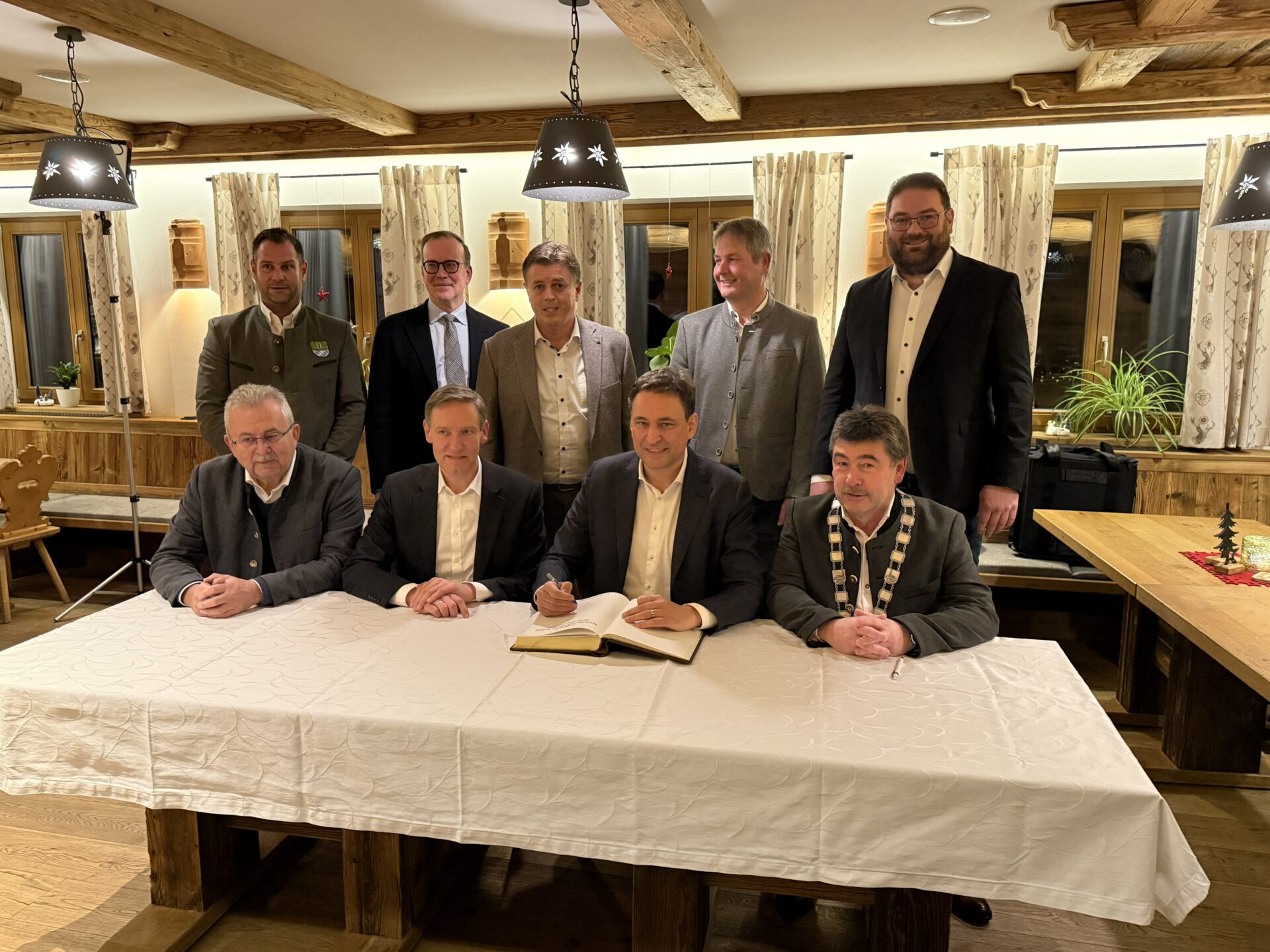 Bürgermeister Neumeier durfte am 27.11.2025 anlässlich der Verleihung des Preises „Top-Unternehmen Niederbayern“ Staatsminister der Justiz, Herrn Georg Eisenreich, im Gasthaus „Zur Linde“ begrüßen. Als „Münchner mit niederbayerischen Genen“ – seine Familie stammt aus dem Landkreis Passau – freue sich der Staatsminister immer, Termine in der Niederbayern wahrnehmen zu können. Er betonte bei seiner Festrede zur Verleihung, dass es wichtig sei, Unternehmen zu haben, „die wissen, wo sie herkommen“. Bürgermeister Alfons Neumeier zeigte sich stolz darüber, so hohen Besuch in seiner Gemeinde zu diesem Anlass empfangen zu dürfen. Mit einem Eintrag in das Goldene Buch der Gemeinde zu Beginn der Veranstaltung wurde der festliche Rahmen für diesen Abend gesetzt.