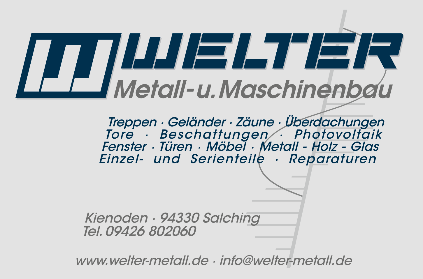 Welter Metall- u. Maschinenbau Kienoden 94330 Salching 09426 802060 info@welter-metall.de www.welter-metall.de